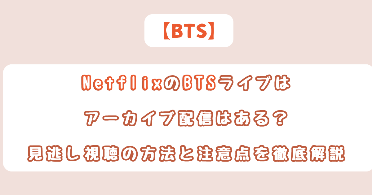 • NetflixでのBTSライブアーカイブ(見逃し配信)の有無