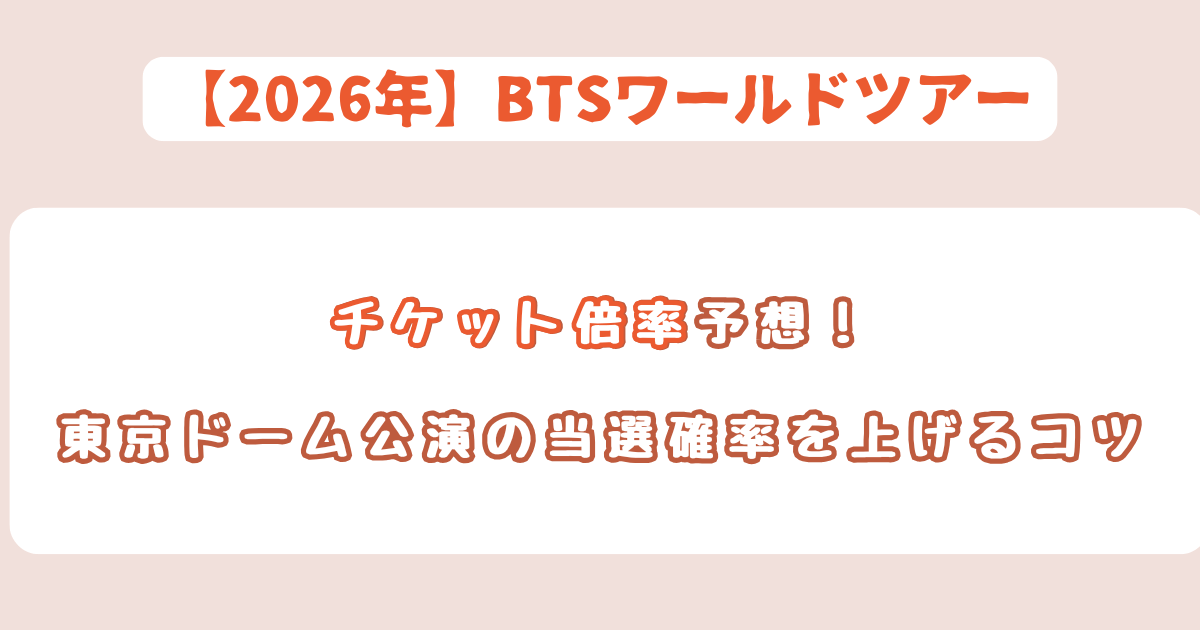 BTSワールドツアー2026の東京ドーム公演は、20倍~30倍という数字が示す通り、極めて厳しい戦いになります。