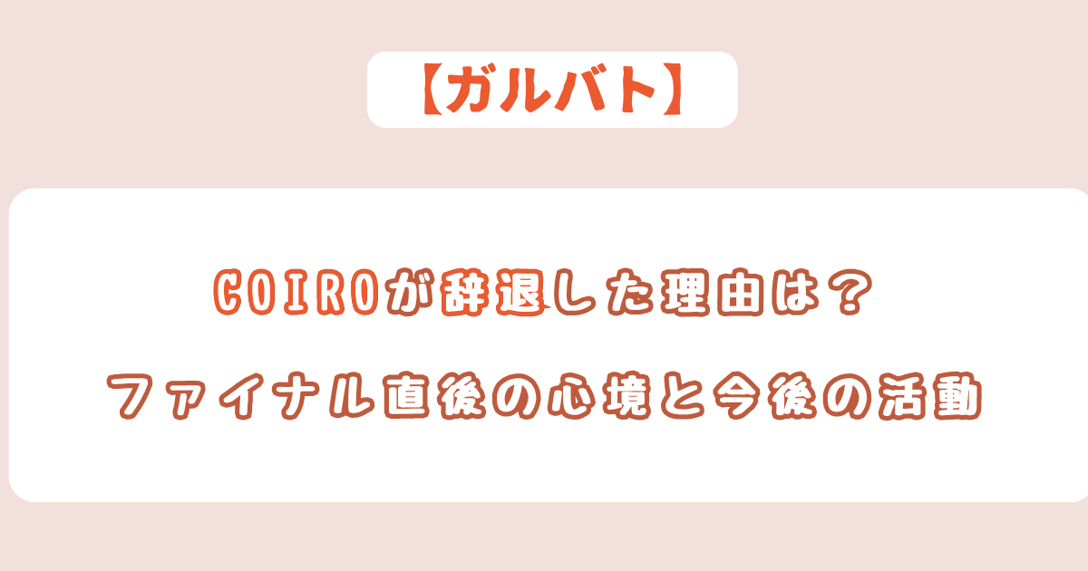 今回は、コイロさんがガルバトでの“全員合格”という結果を受けながらも、あえてデビューを辞退した理由と、その背景にあった思いを詳しく解説しました。