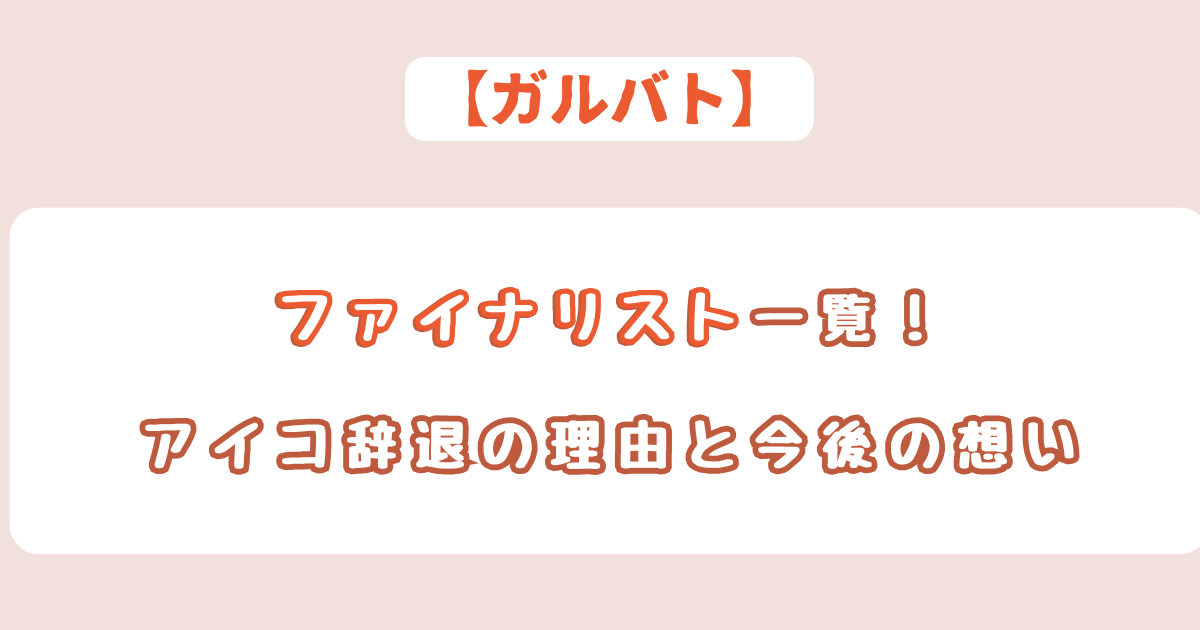 【ガルバト】ファイナリスト一覧!アイコ辞退の理由と今後の想い