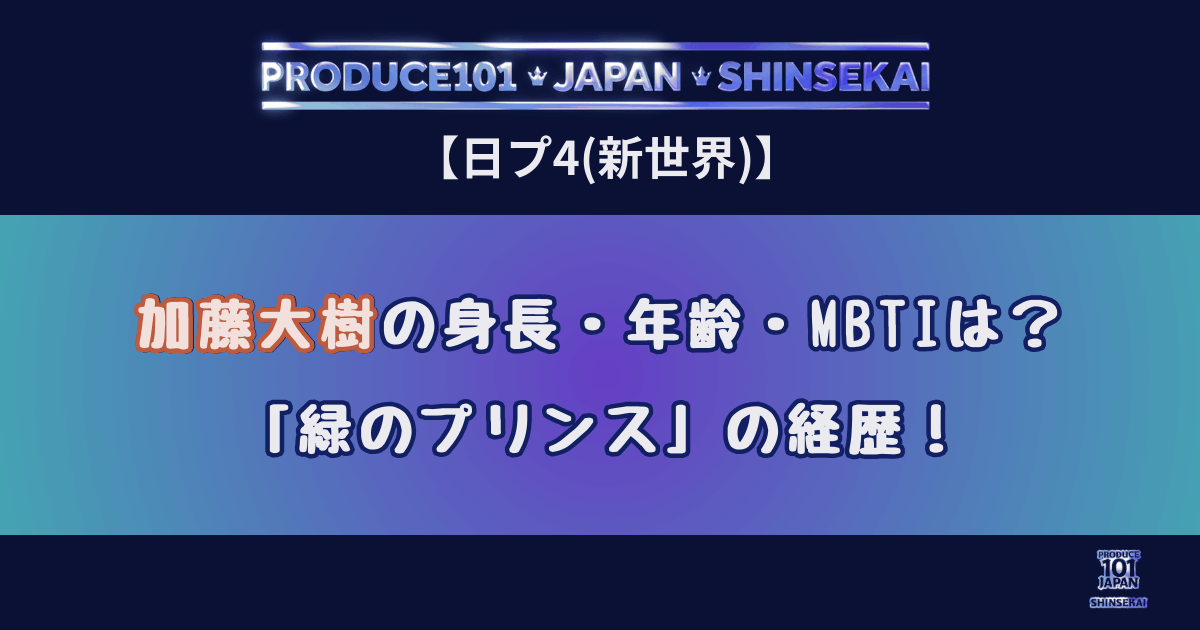 【日プ新世界】加藤大樹の身長・年齢・MBTIは?「緑のプリンス」の経歴!