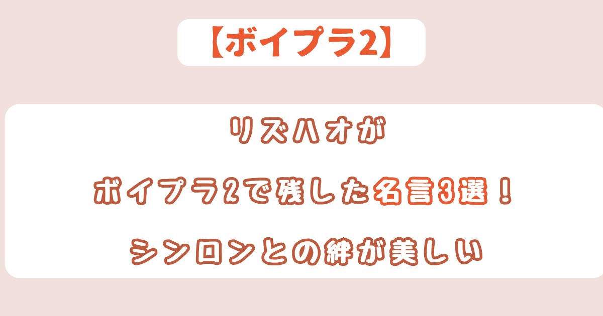 本記事では、ボイプラ2で語られたリズハオさんの名言3選と、彼が見せた友情・支え合いの物語を振り返ります。