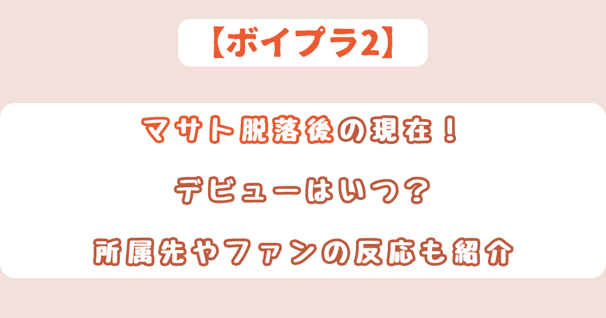 記事では、マサトさんの脱落の背景や現在の状況、噂されている所属先、そしてデビューの可能性について最新情報をもとに詳しく解説。