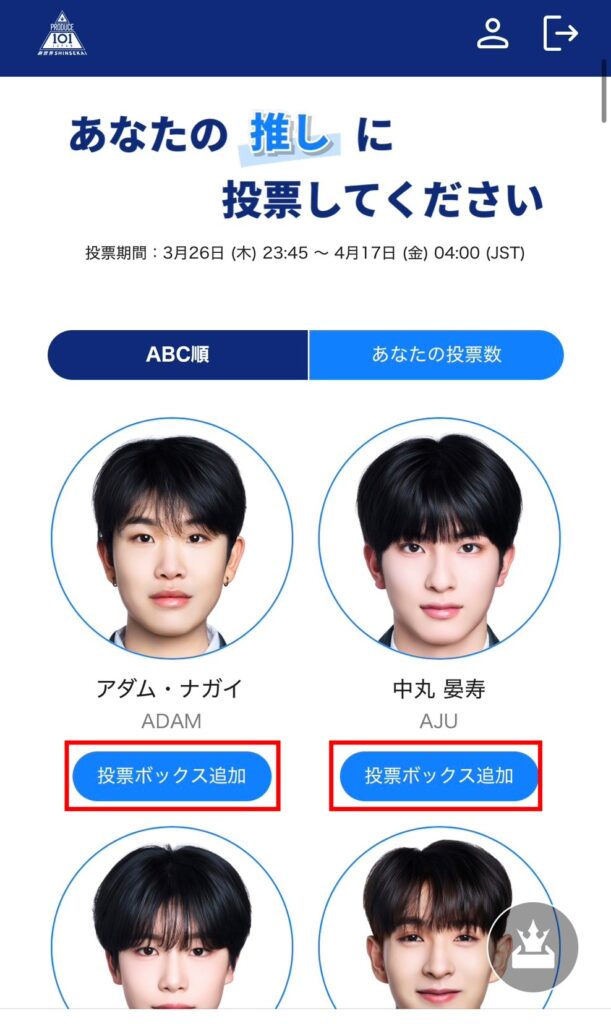 今回の第1回投票では、12人の練習生を選ばなければ投票ボタンが反応しません。
