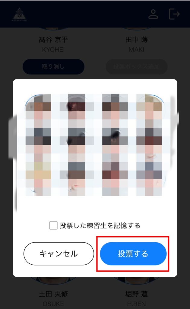 4.ボックス内の顔ぶれを確認し、「投票する」ボタンをタップ!