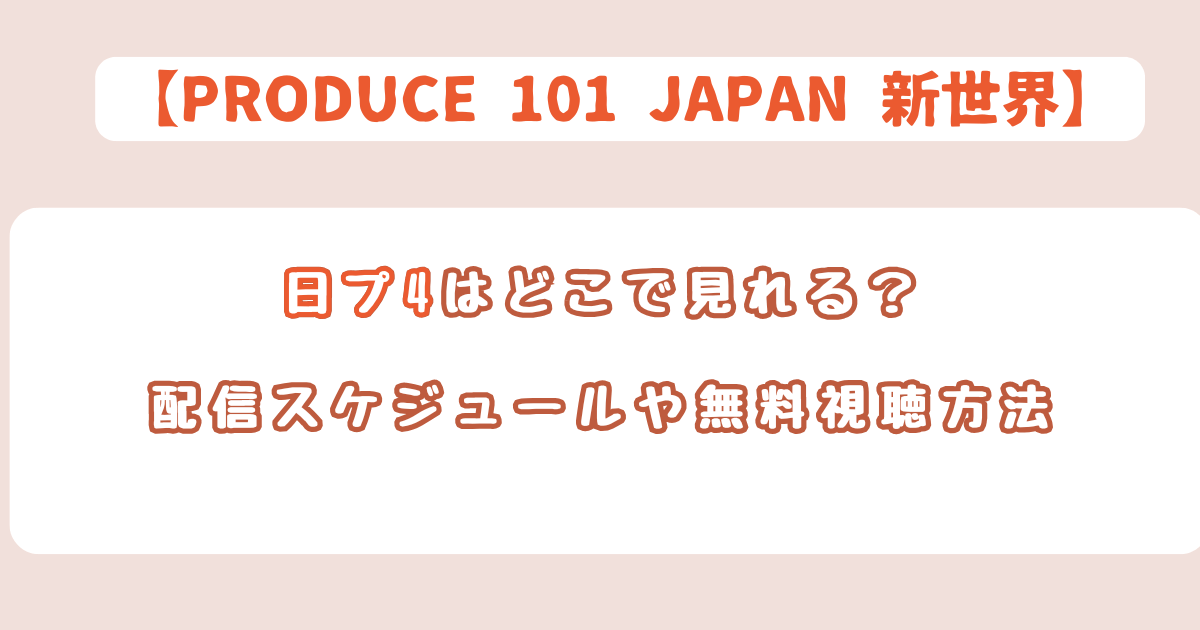 - 日プ4(新世界)はどこで見れるのか