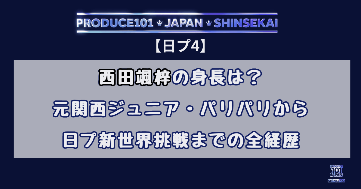 本記事では、西田颯梓さんの身長や年齢、プロフィールといった基本情報から、元関西ジュニア、ジュノンボーイファイナリスト、DDパリパリ神楽颯梓としての活動、そして現在の日プ新世界挑戦までの経歴を時系列で詳しく解説します。