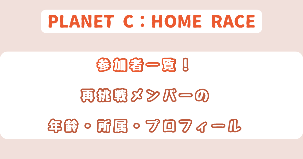 【PLANET C:HOME RACE(ホームレース)】参加者一覧!再挑戦メンバーの年齢・所属・プロフィールまとめをお届けします。