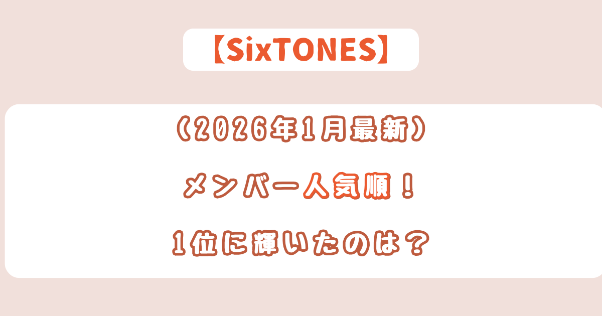 SixTONESメンバーの総合人気順(2026年1月)は以下の通りです。