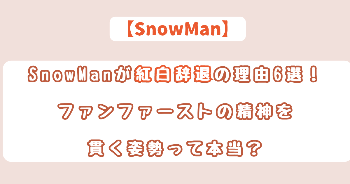 本記事では、Yahoo!コメントや過去の動向をもとに、紅白辞退の理由を6つの視点から深掘りし、SnowManが貫くファンへの姿勢とその真意を読み解いていきます。