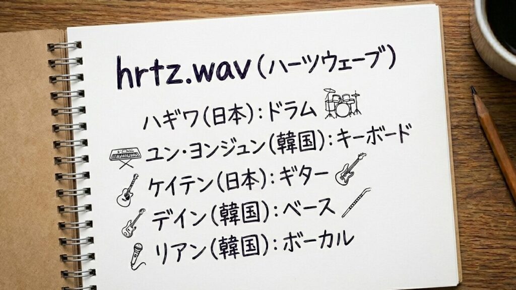 バンド名「hrtz.wav(ハーツウェイブ)」は、日本人メンバー・ケイテンの発案によるもの。