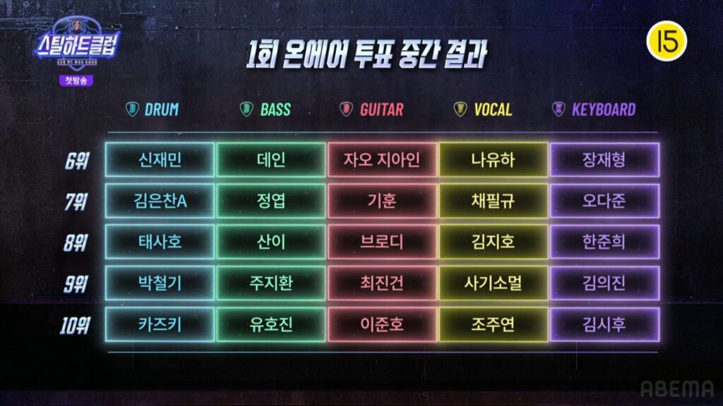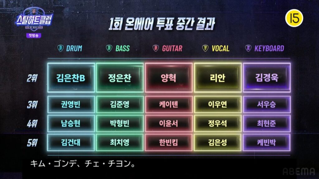 2025年10月21日に放送された第1回では、放送後に行われた投票の中間順位結果が公開されました。