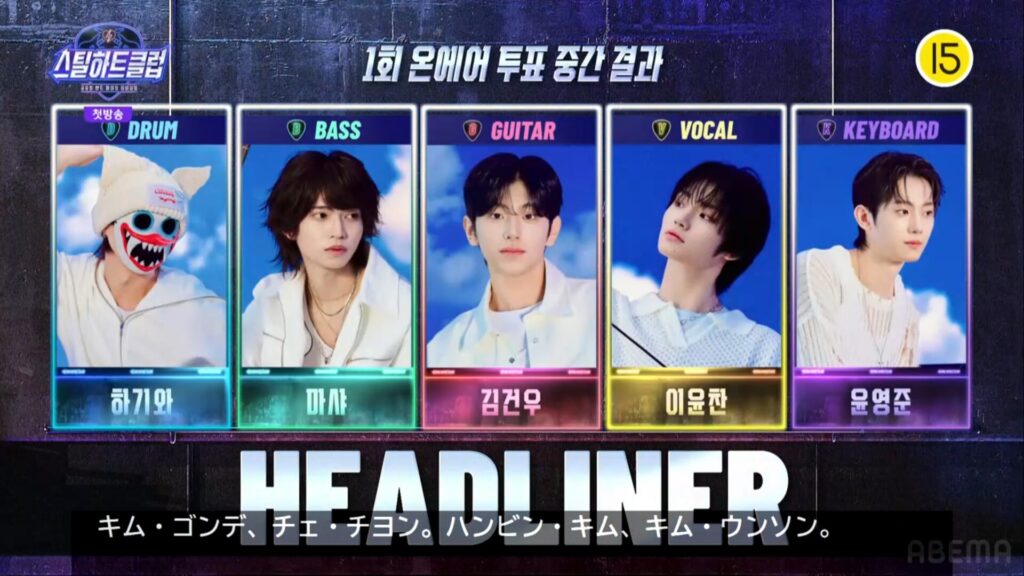 各パートで1位を獲得したメンバー(ハギワ、マーシャ、キム・ゴヌ、イ・ユンチャン、ユン・ヨンジュン)は番組内で「ヘッドライナー(HEADLINER)」として紹介され、強い印象を残しました。