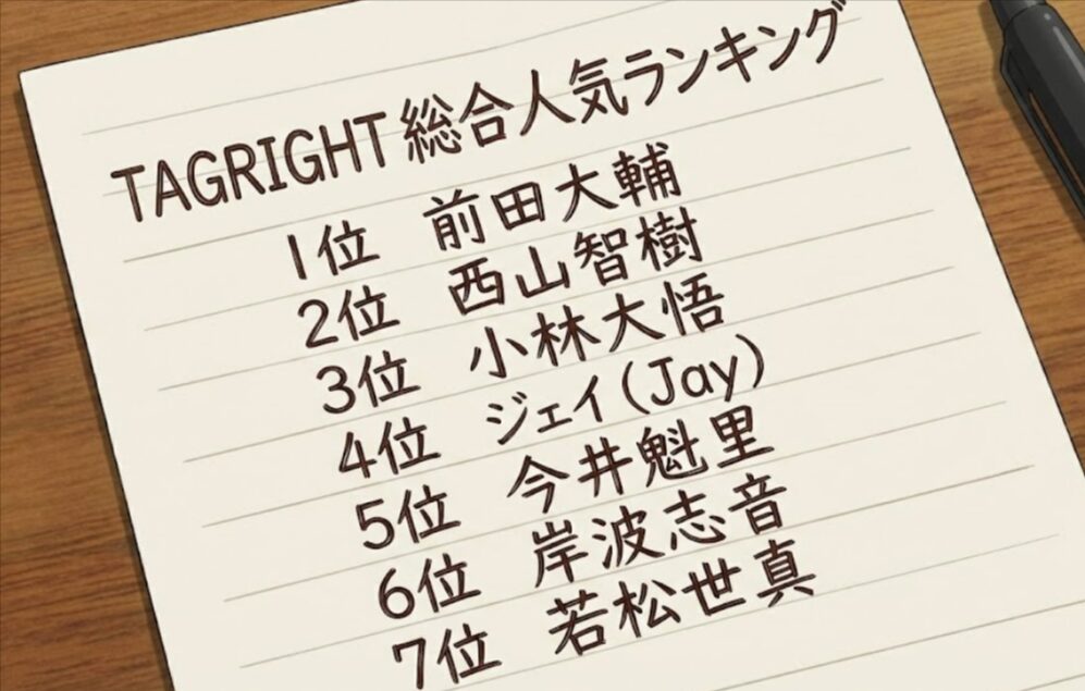 ・TAGRIGHTメンバー7人の2026年1月時点の総合人気順位