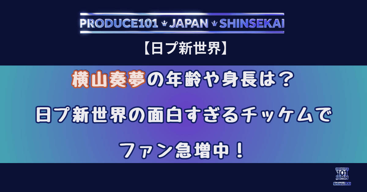 横山奏夢の年齢や身長は?日プ新世界の面白すぎるチッケムでファン急増中!